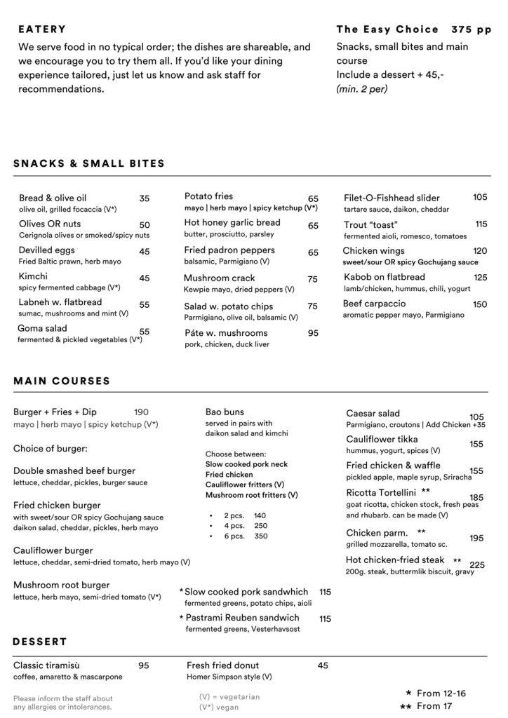 We offer several dining packages for groups, checks them out here: https://tapperietbrus.dk/set-menus/
